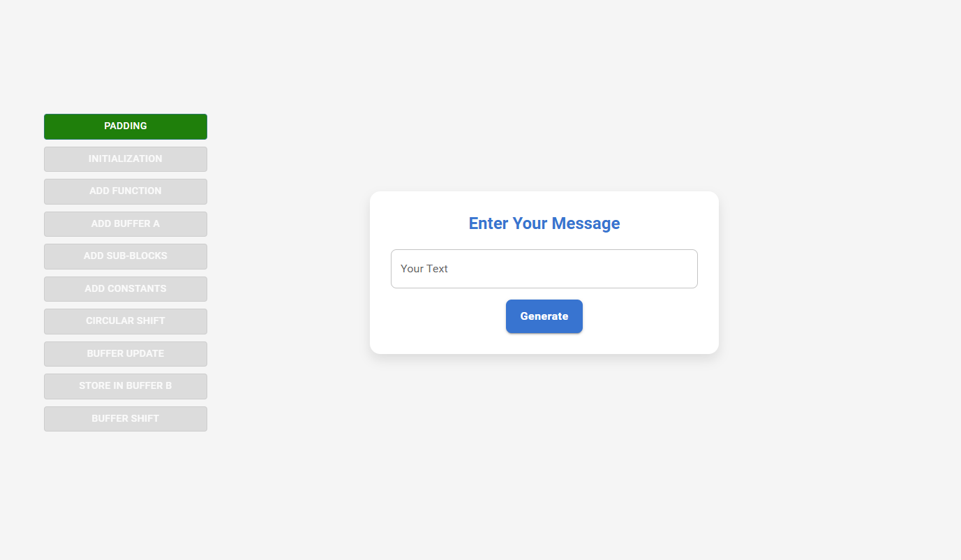 Step 1: Click the padding button, add your value in the input field and click the generate button to start the MD5 hashing process.